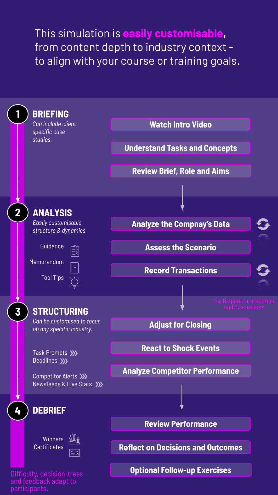 Can the simulation be customized for our specific curriculum? Yes, we offer customization options for the transaction set, company scenarios, and specific accounting standards (for example, IFRS vs. GAAP focus) to better align with your course objectives.