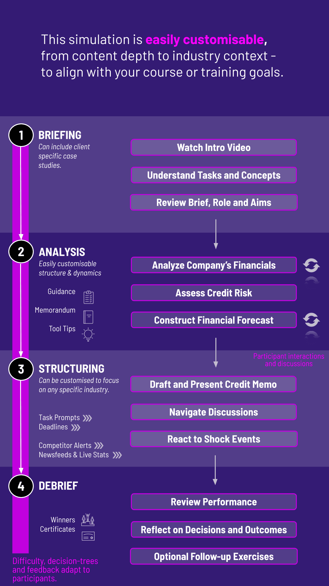 What are the prerequisites for this simulation? A foundational understanding of accounting and corporate finance is recommended. However, the simulation includes guides and resources to help refresh key concepts, making it accessible to motivated participants.